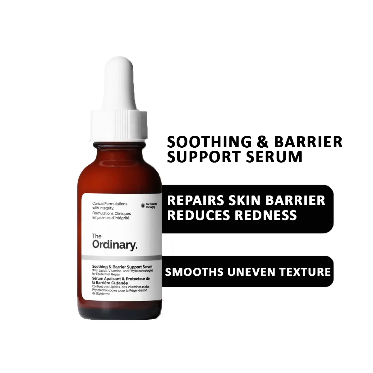 Soothing & Barrier Support Serum is a multi-active solution Serum. It targetes at reducing the look of irritated skin. It helps recover the skin barrier in 2 hours. And provides an immediate 86%** boost in skin hydration. Original Ordinary Soothing Serum in Pakistan helps soothe feelings of discomfort. It reduces signs of redness. While strengthening the skin barrier, Original Ordinary Soothing Serum in Pakistan also improves the look of uneven texture for a smoother appearance. Formulated with multiple vitamins, lipids, and phytotechnologies. This comprehensive serum is suitable for all skin types, including sensitive skin. Ordinary Soothing & Barrier Support Serum in PakistanΒ contains 8 key technologies.